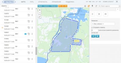 Зонами в форме круга или многоугольника на карте можно отметить места загрузки и разгрузки, месторождения полезных ископаемых, земельные участки или любые другие территории. Отчёт опосещениях зон позволяет удобно подсчитывать автогрузы, а такж измерять время, затраченное на очистку снега, подготовку земельного участка к севу или оказание других услуг. Пользователь может заказать услугу оповещения на случай, если в зоне собирается количество машин, превышающее дозволенное.