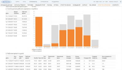 Для более удобного просмотра данные представлены в виде сравнительной таблицы. Машины можно отсортировать по расходу топлива, поездкам или прочей единице измерения. Зачастую отображение данных в виде графика позволяет взглянуть на ситуацию на ином уровне – становится моментально ясно, что происходит в топливном баке. Динамическая шкала позволяет заметить даже потерю в несколько литров.