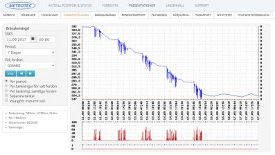 Ofta tar grafer eller diagram överskådligheten av uppgifterna till en helt ny nivå. Man får genast klart för sig vad som pågår i bränsletanken. Dynamisk skala visar även några liters förlust tydligt.