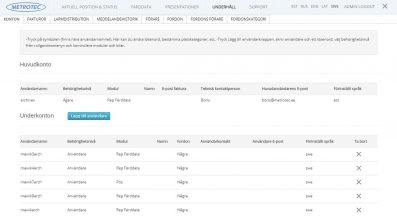 Det flexibla systemet möjliggör att skapa underkonton med olika rättighetsnivåer och profiler samt koppla olika maskiner till användare. Dessutom kan man skapa gemensamma konton som förenar lastbilar av olika transportörer efter en specifik egenskap.