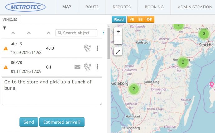 Garmin’s navigator, assigning tasks and destinations, estimated time of arrival .. Remotely controlled navigation terminal near drivers seat creates two-way data exchange between office and driver, including map support. A destination marker (POI) on a map in office is transferred with a mouseclick to the drivers navigation terminal. Maximal understanding through minimal effort! The driver accepts the task, navigation device guides the driver. The office sees, in addition to vehicles location and busyness, destination data and Estimated Time of Arrival. The yourney can be observed in real time. Precisely determined destinations save time and fuel. A task specified on map combined with navigation terminals directions makes drivers work simple and stress-free. In addition to automated messages, the navigation terminal enables two-way communication between office and driver. Simple and fast communication increases flexibility in reacting to events – from an unexpected job to a broken tire.