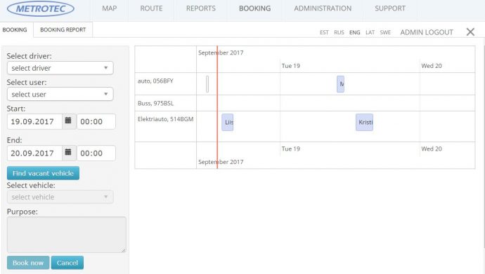 - Booking of a vehicle for a certain driver for a certain, determined period