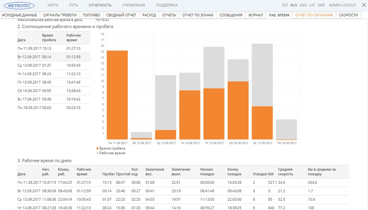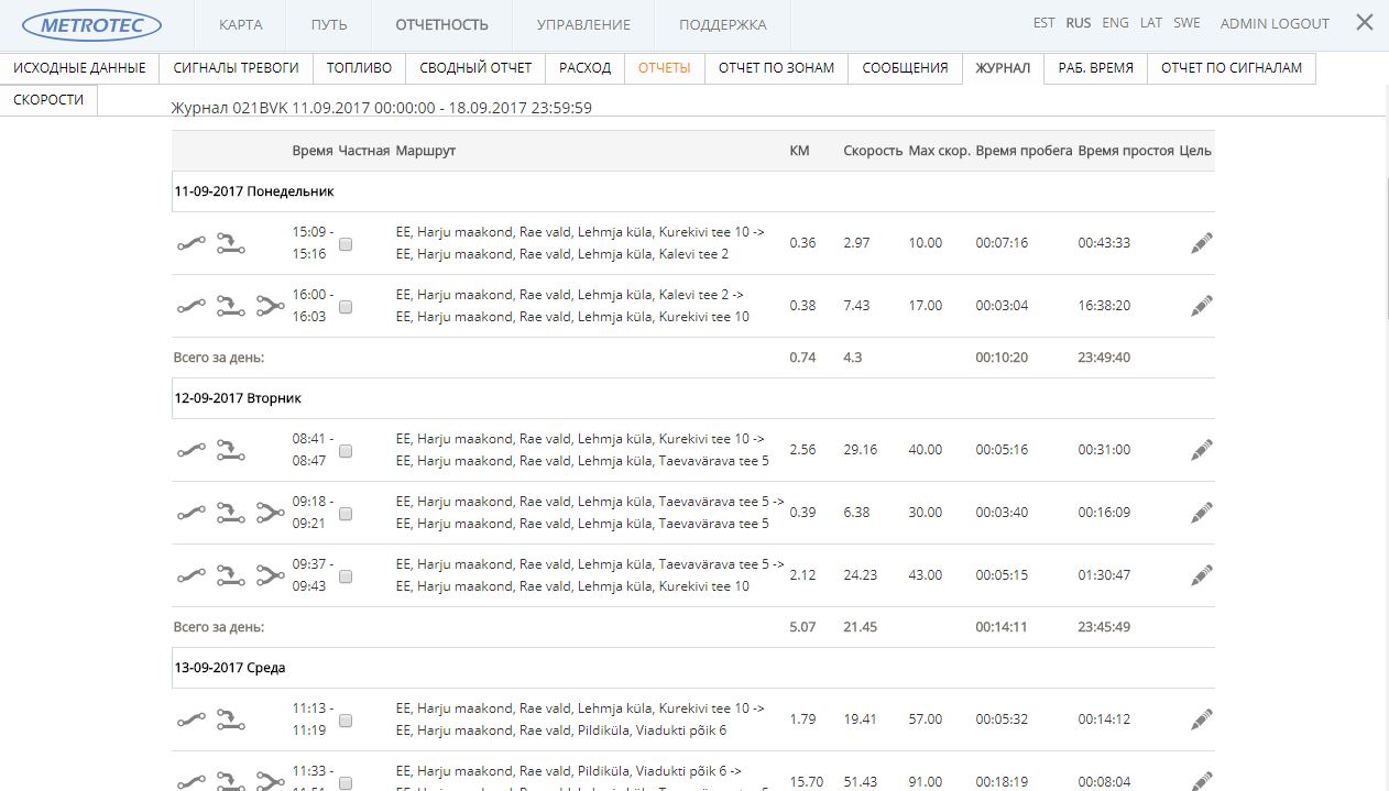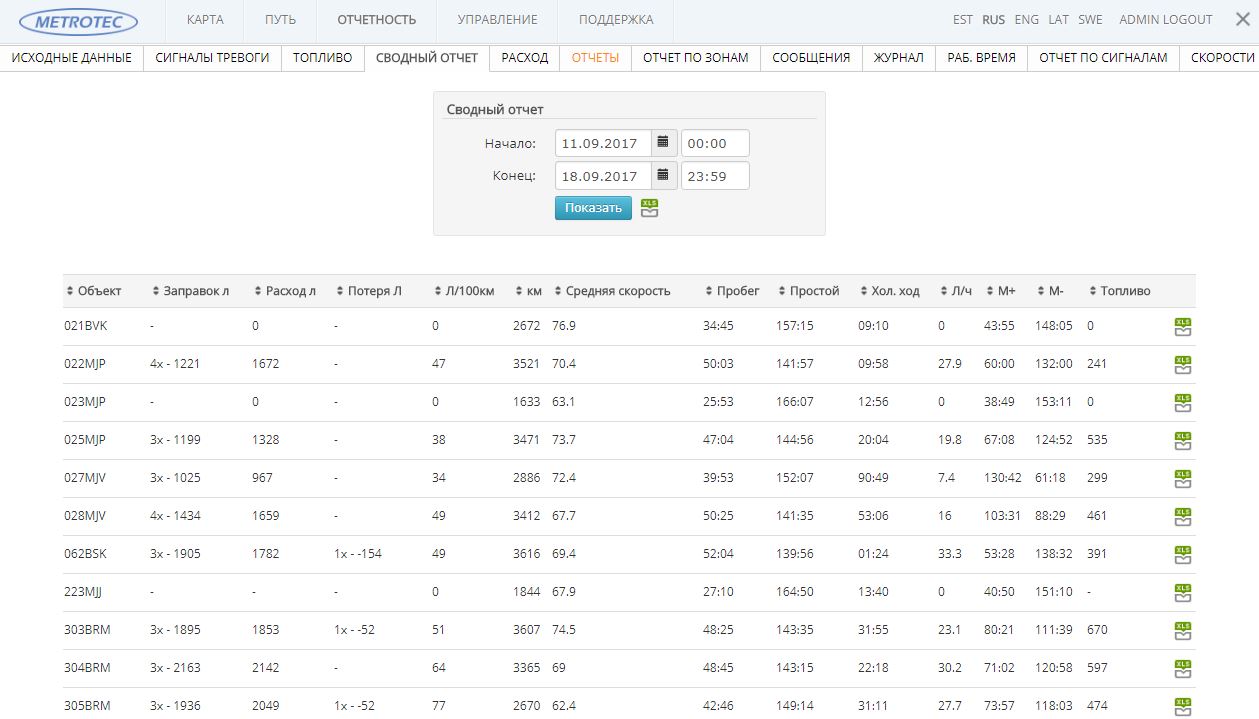 Регистрируя с определенным интервалом показания датчиков, фиксируя в них изменения и сохраняя 24 часа в сутки/7 дней в неделю всю историю поездок, система F-Track производит непрерывную и качественную исходную информацию. В результате обработки, фильтрации и группировки полученных данных создаются различные виды отчетов для пользователя. Отчеты отображают время езды, стоянки и холостой работы мотора, периоды работы и отдыха, скорости передвижения. А также пробег, заправки, расход топлива на 100 км и на 1 моточас. Интерактивный интерфейс пользователя позволяет вести журнал поездок на основе показаний одометра. Для каждого отчета пользователь может выбрать необходимый формат – html, pdf, csv или xls.