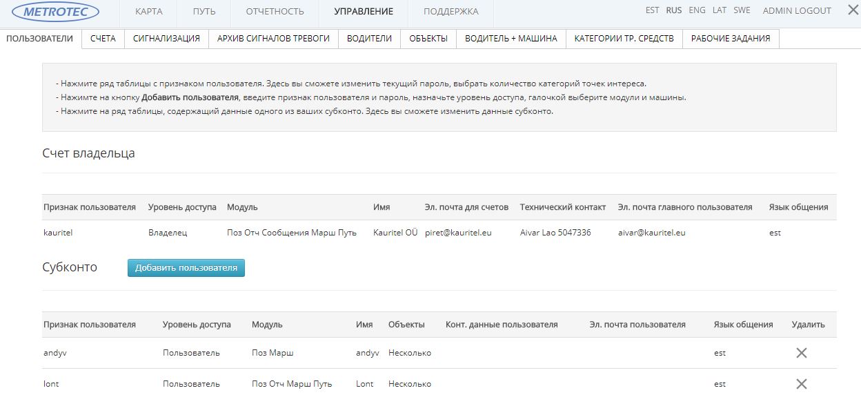 Создавая учетные записи пользователей и управляя ими, можно обеспечить доступ к системе F-Track своим работникам, бизнес партнерам или клиентам. Кто-то хочет получать конкретный отчет по конкретной машине. Кому-то нужно следить за передвижением товара. А кого-то третьего интересует иная деталь. Гибкая система позовляет создавать разные типы пользователей с разным уровнем доступа. Также можно создать объединенное конто, связывающее машины различных перевозчиков.
