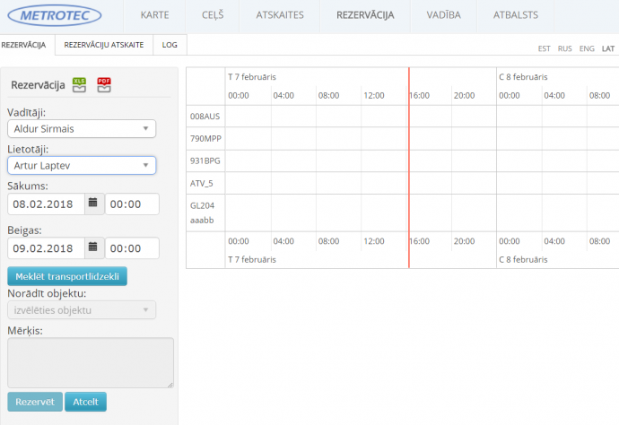 • Transportlīdzekļa rezervēšana konkrētam vadītājam noteiktam periodam