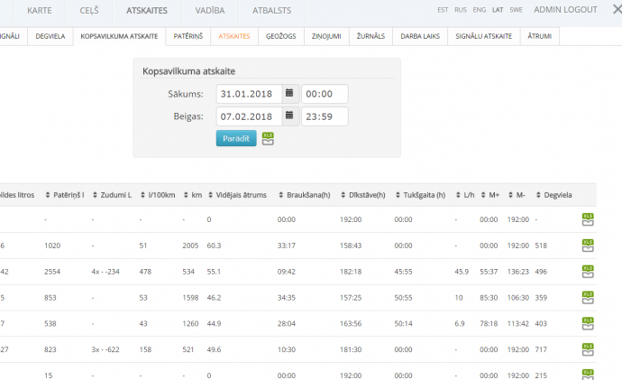 • Detalizētas atskaites par vadītāja darbību, pārkāpumiem un kļūdām
