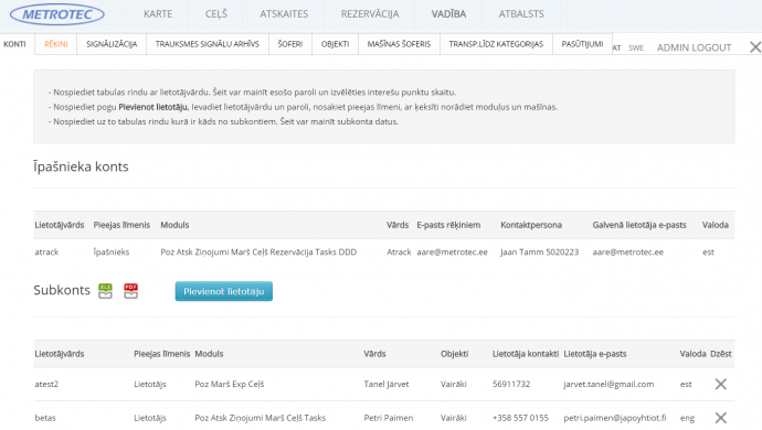 Radot un pārvaldot lietotāju kontus, var nodrošināt piekļuvi F-Track sistēmai saviem darbiniekiem, biznesa partneriem un arī klientiem. Kāds vēlas saņemt konkrēta transportlīdzekļa konkrēta tipa atskaiti. Savukārt kāds cits vēlas sekot preču sūtījuma kustībai. Kādu trešo interesē kāda trešā detaļa.